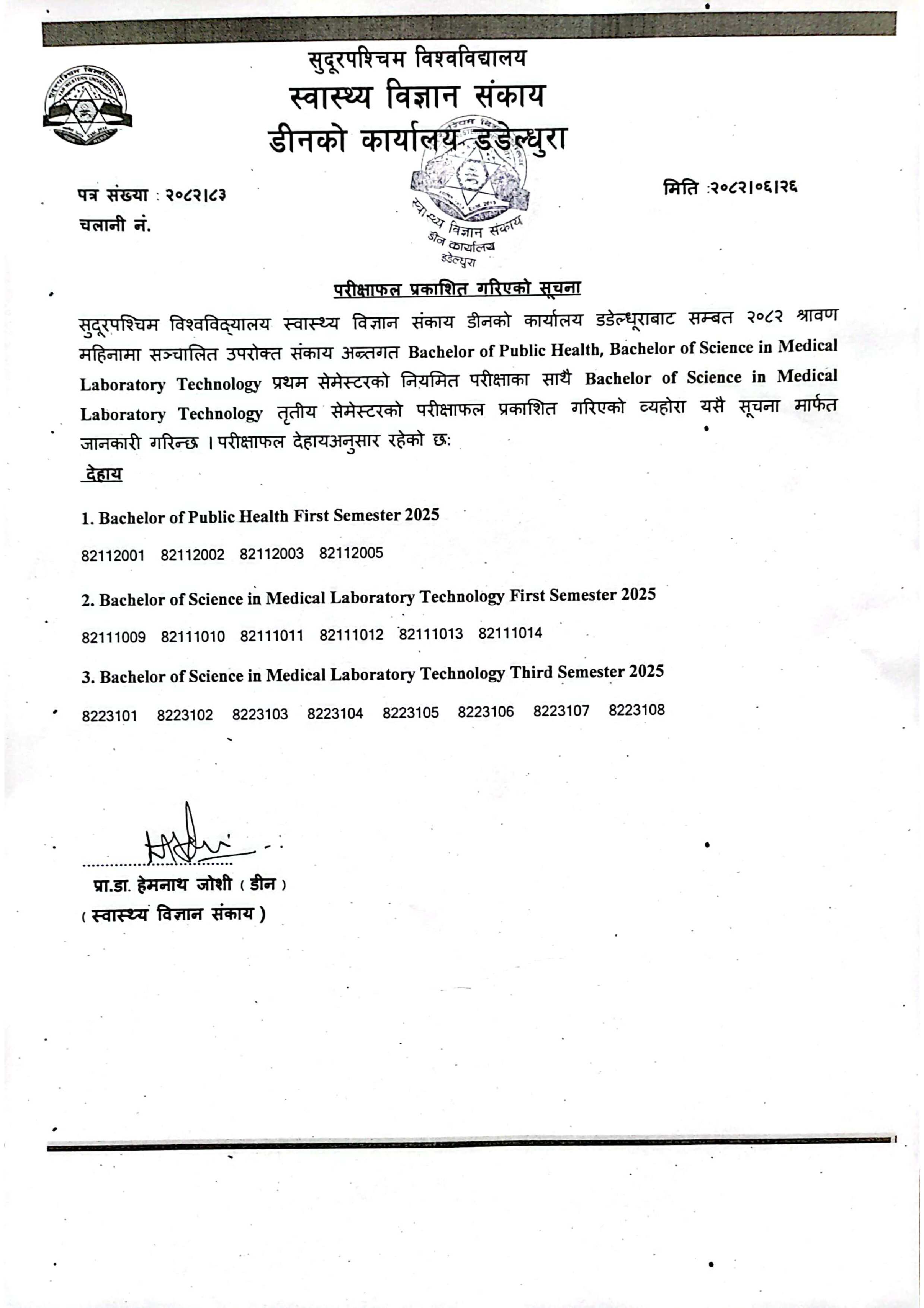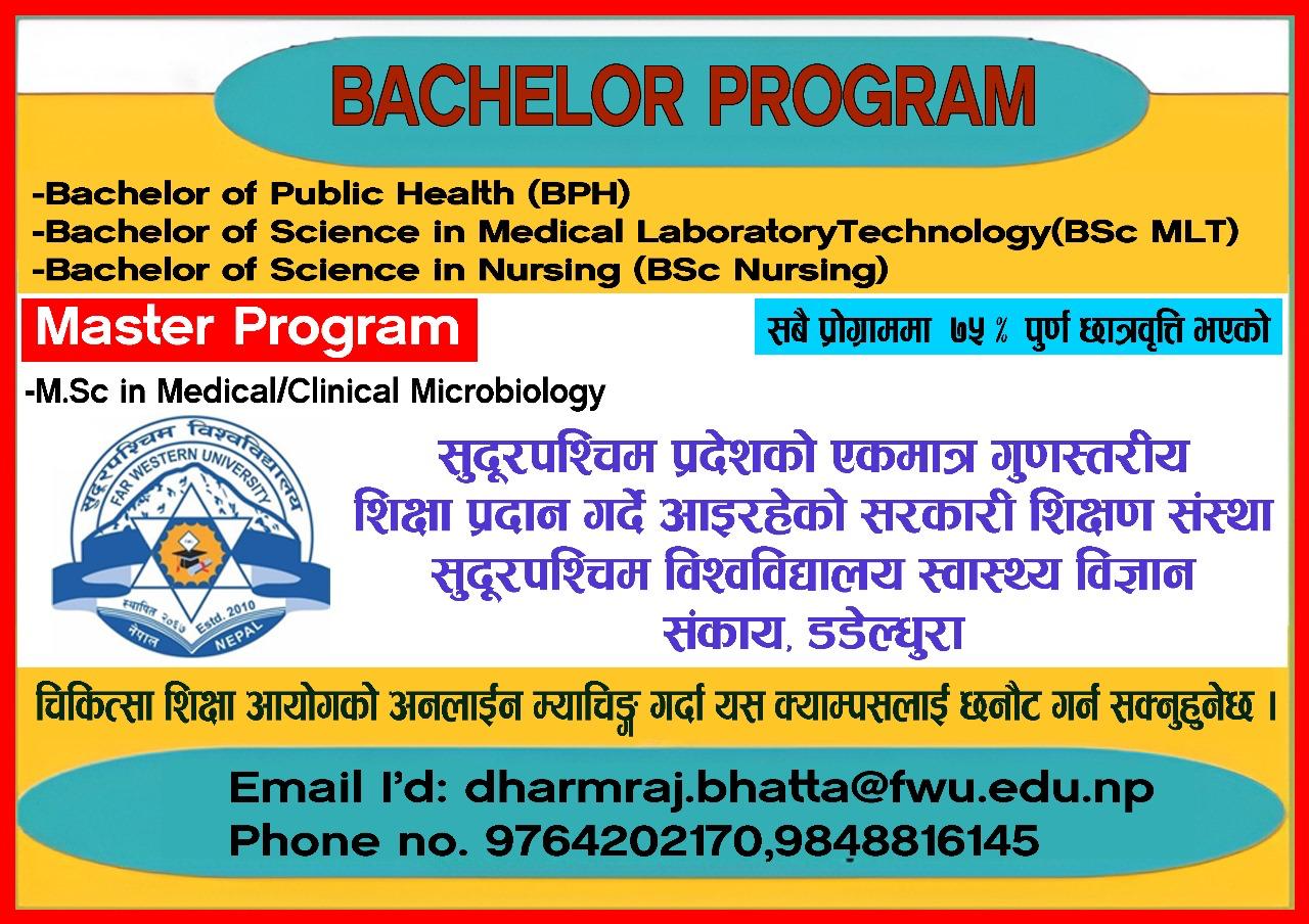 स्वास्थ्य विज्ञान संकायको स्नातक तहको भर्ना सम्बन्धि अत्यन्त जरूरी सूचना